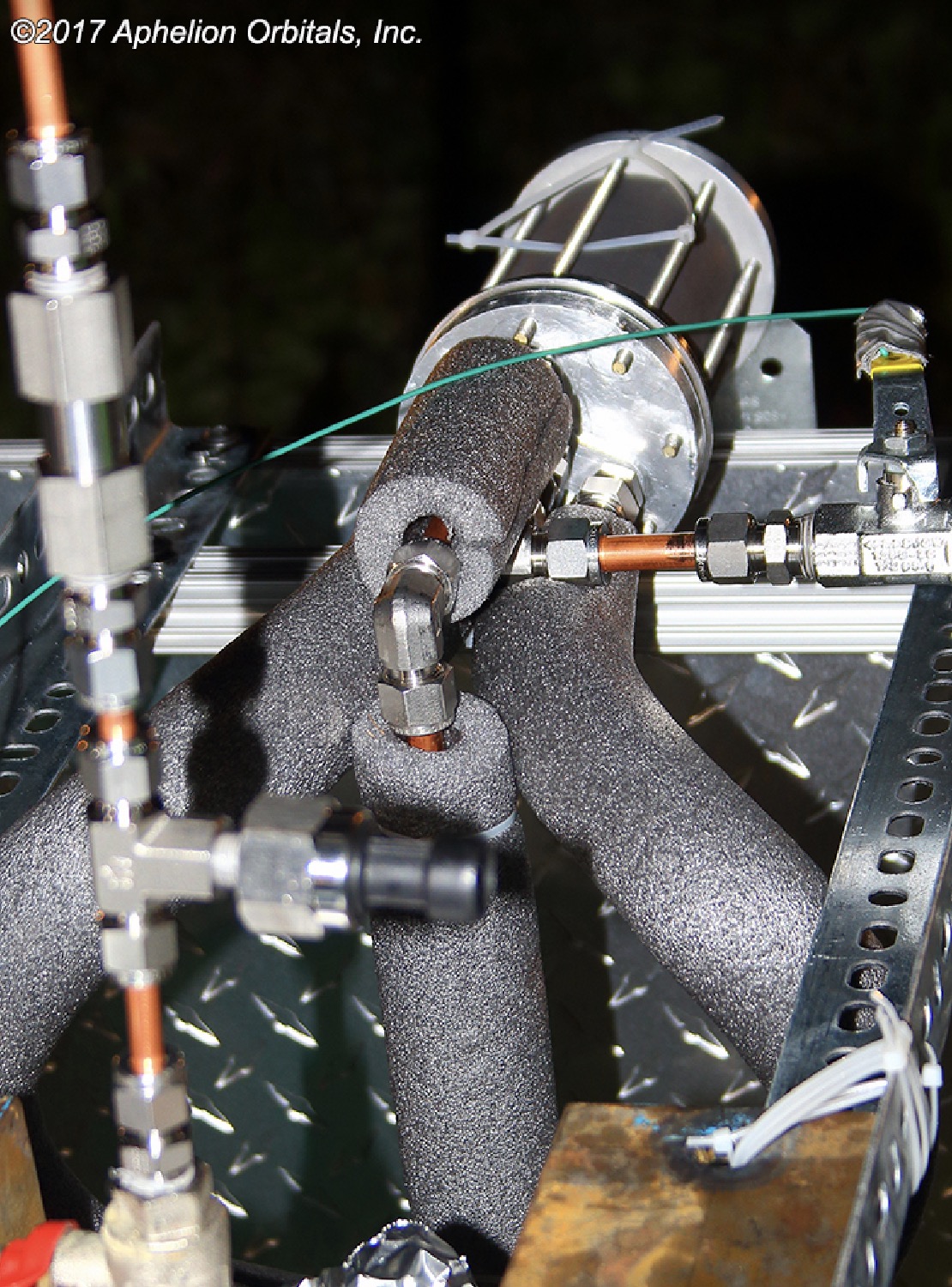 Aphelion Orbitals employees Chris and Peter making final adjustments on our mobile test stand prior to today’s test fire. Credit: Aphelion Orbitals, Inc.